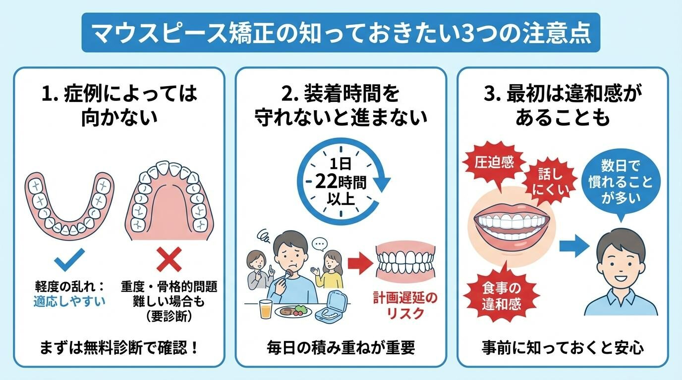 マウスピース矯正は便利な治療ですが、誰にでも同じように合うわけではありません。
