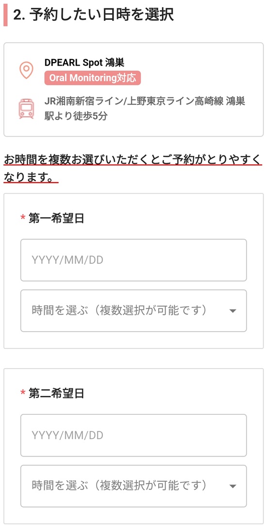 まずは、DPEARLのカウンセリング予約フォームから初回検診の予約をします。