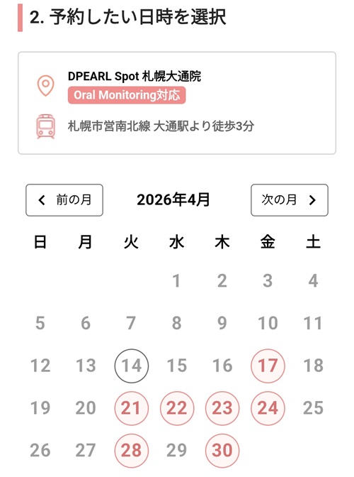 「DPEARL Spot 札幌大通院」を選択し、クリック(タップ)します。