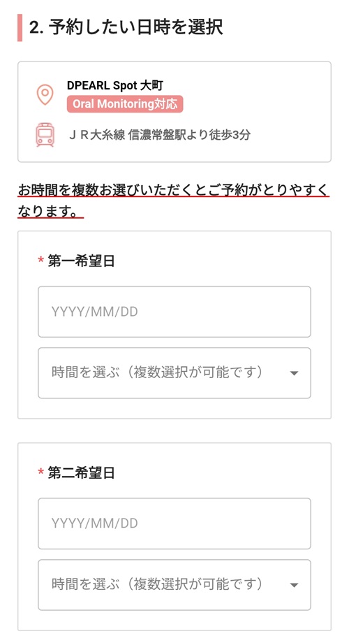 まずは、DPEARLのカウンセリング予約フォームから初回検診の予約をします。