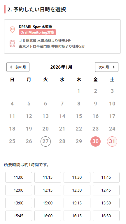 予約日時にDPEARL Spot 水道橋(リュミエールデンタルクリニック水道橋)へ来院します。