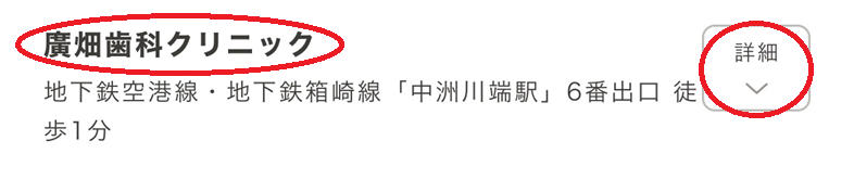 「廣畑歯科クリニック」を選択し、「詳細」をクリック(タップ)します。