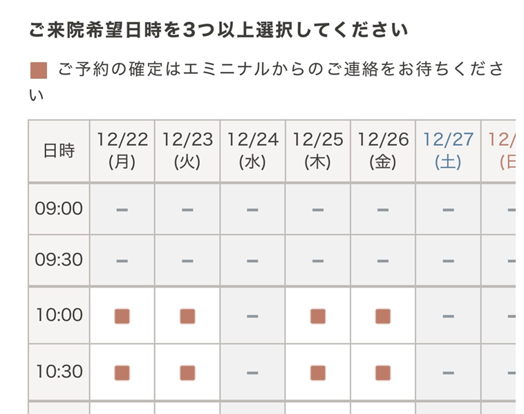 まずは、エミニナル矯正の予約フォームから初回診断予約をします。