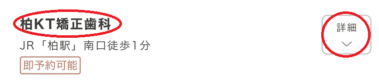 「柏KT矯正歯科」を選択し、「詳細」をクリック(タップ)します。
