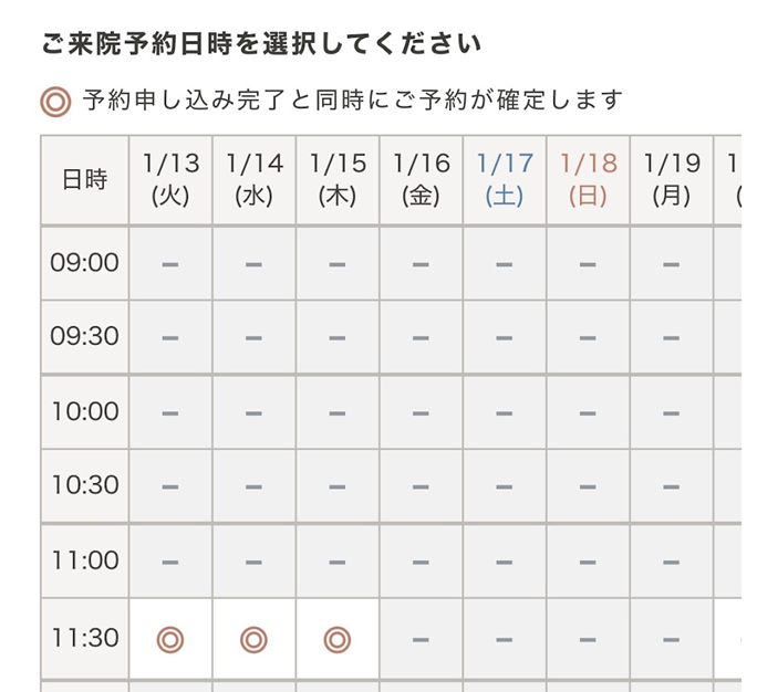 予約フォームにある「初回診断を予約する」をクリック(タップ)します。