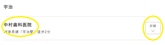 「中村歯科医院」を選択し、「詳細」をクリック(タップ)します。