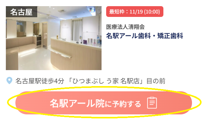 「名駅アール院に予約する」の予約ボタンで予約しましょう。