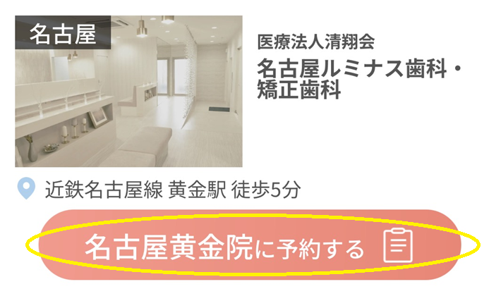 公式サイトにある「無料で今すぐ予約」をクリック(タップ)し、予約クリニック(名古屋ルミナス歯科)を選択、希望日時など必要項目を入力して予約します。