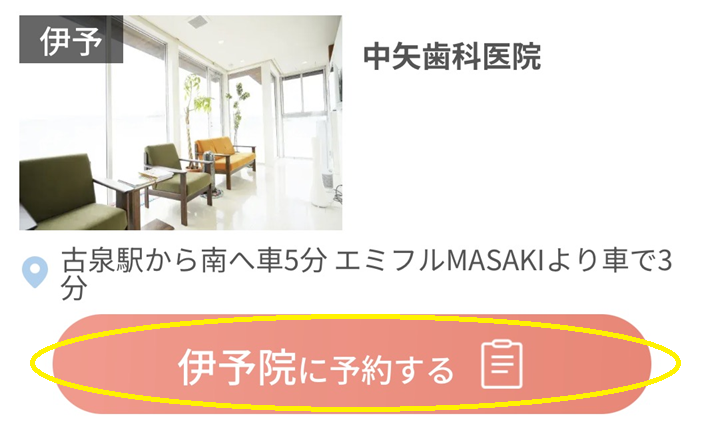 公式サイトにある「無料で今すぐ予約」をクリック(タップ)し、予約クリニック(中矢歯科医院)を選択、希望日時など必要項目を入力して予約します。