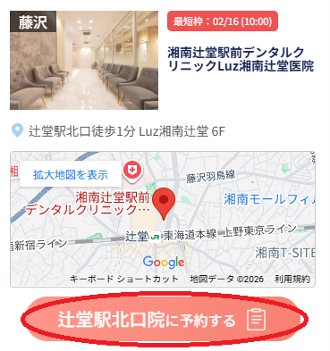 「辻堂駅北口院に予約する」の予約ボタンで予約しましょう。