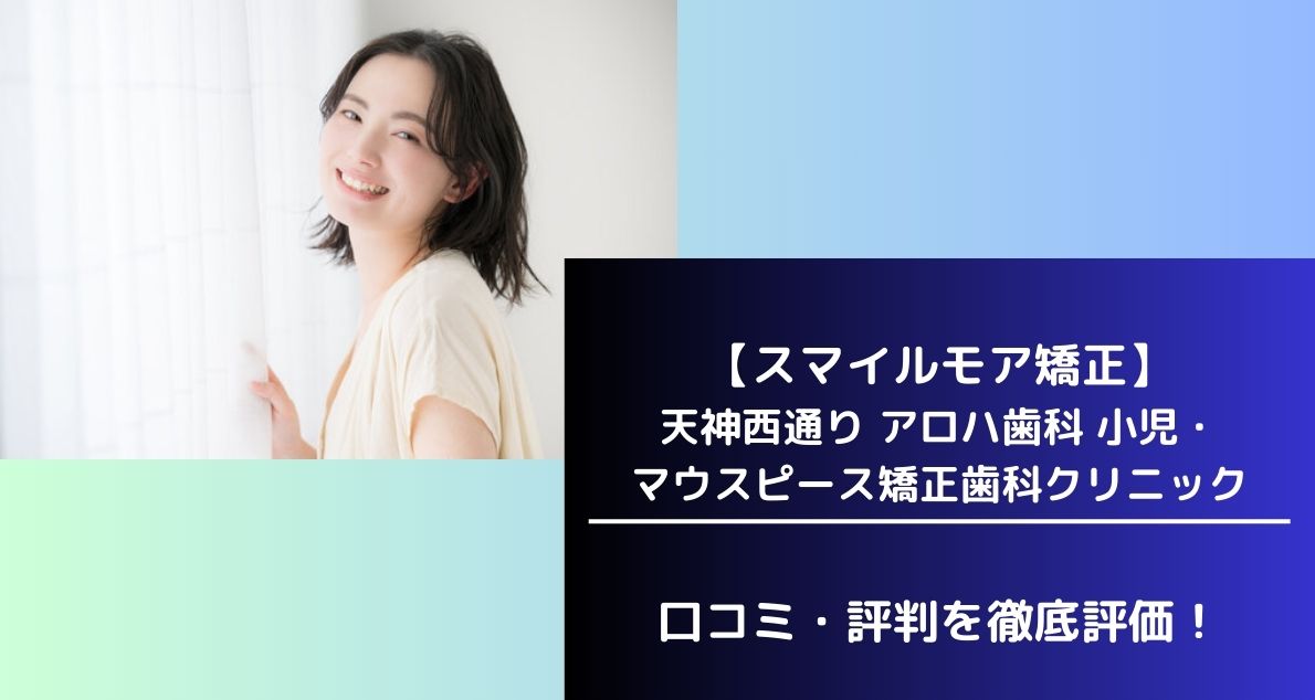 本記事では、スマイルモア矯正(天神西通り アロハ歯科 小児・マウスピース矯正歯科クリニック)の良い口コミも悪い口コミも包み隠さず、徹底評価していますのでぜひ参考にしてください。