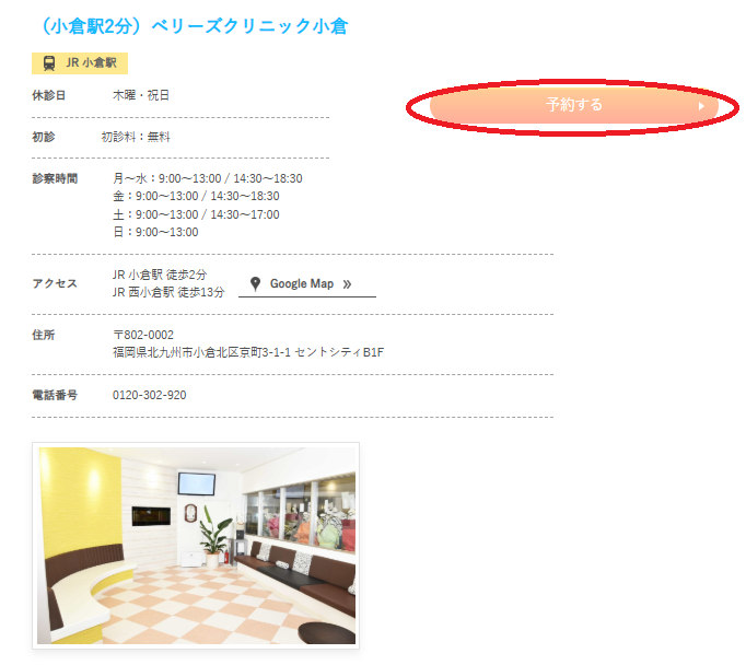 「ベリーズクリニック小倉」の予約ボタンで予約しましょう。