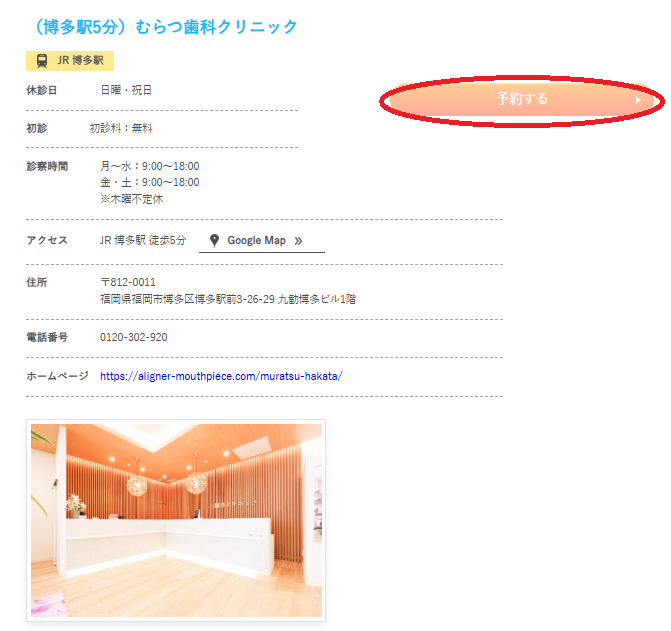 「むらつ歯科クリニック」の予約ボタンで予約しましょう。