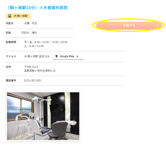 「小木曽歯科医院」の予約ボタンで予約しましょう。