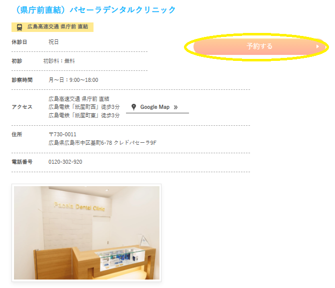 「パセーラデンタルクリニック」の予約ボタンで予約しましょう。