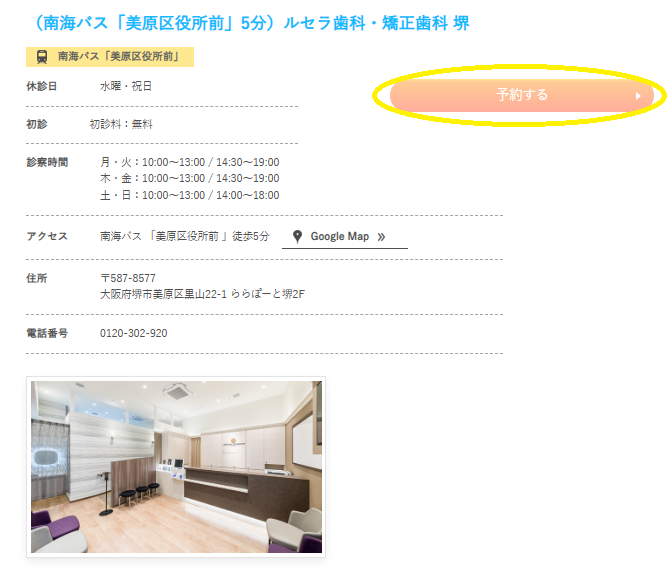 「ルセラ歯科・矯正歯科 堺」の予約ボタンで予約しましょう。